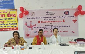लखनऊ स्थित बंसल कॉलेज ऑफ इंजीनियरिंग एंड टेक्नोलॉजी में 16 अप्रैल 2026 को एनएसएस इकाई के तत्वावधान में रक्तदान शिविर का आयोजन किया गया। यह शिविर डॉ. श्यामा प्रसाद मुखर्जी (सिविल) हॉस्पिटल और हरी-ओम सेवा केंद्र, लखनऊ के सहयोग से बीआईईटी कैंपस में संपन्न हुआ। कार्यक्रम का उद्घाटन अध्यक्ष जी.एस. अग्रवाल, निदेशक डॉ. एस.के. अग्रवाल, प्रॉक्टर आर.पी. सिंह, डीन एकेडमिक, विभागाध्यक्ष, कुलसचिव एवं एनएसएस कार्यक्रम अधिकारी जे.के. श्रीवास्तव सहित संकाय सदस्यों, स्टाफ और स्वयंसेवकों की उपस्थिति में किया गया।